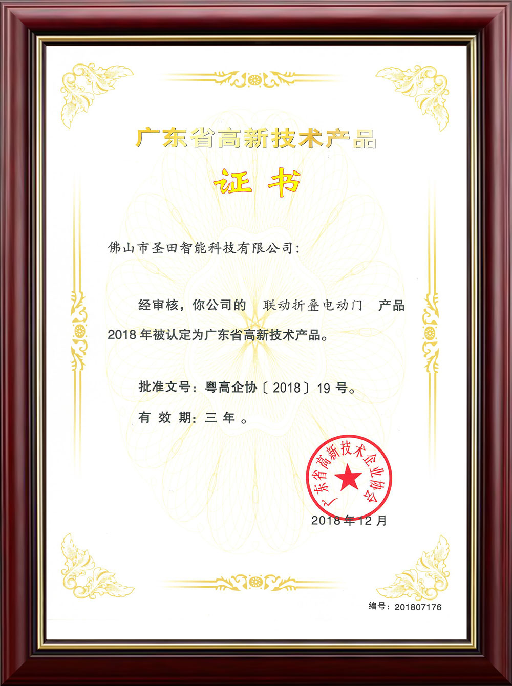 廣東省高新技術(shù)產(chǎn)品證書