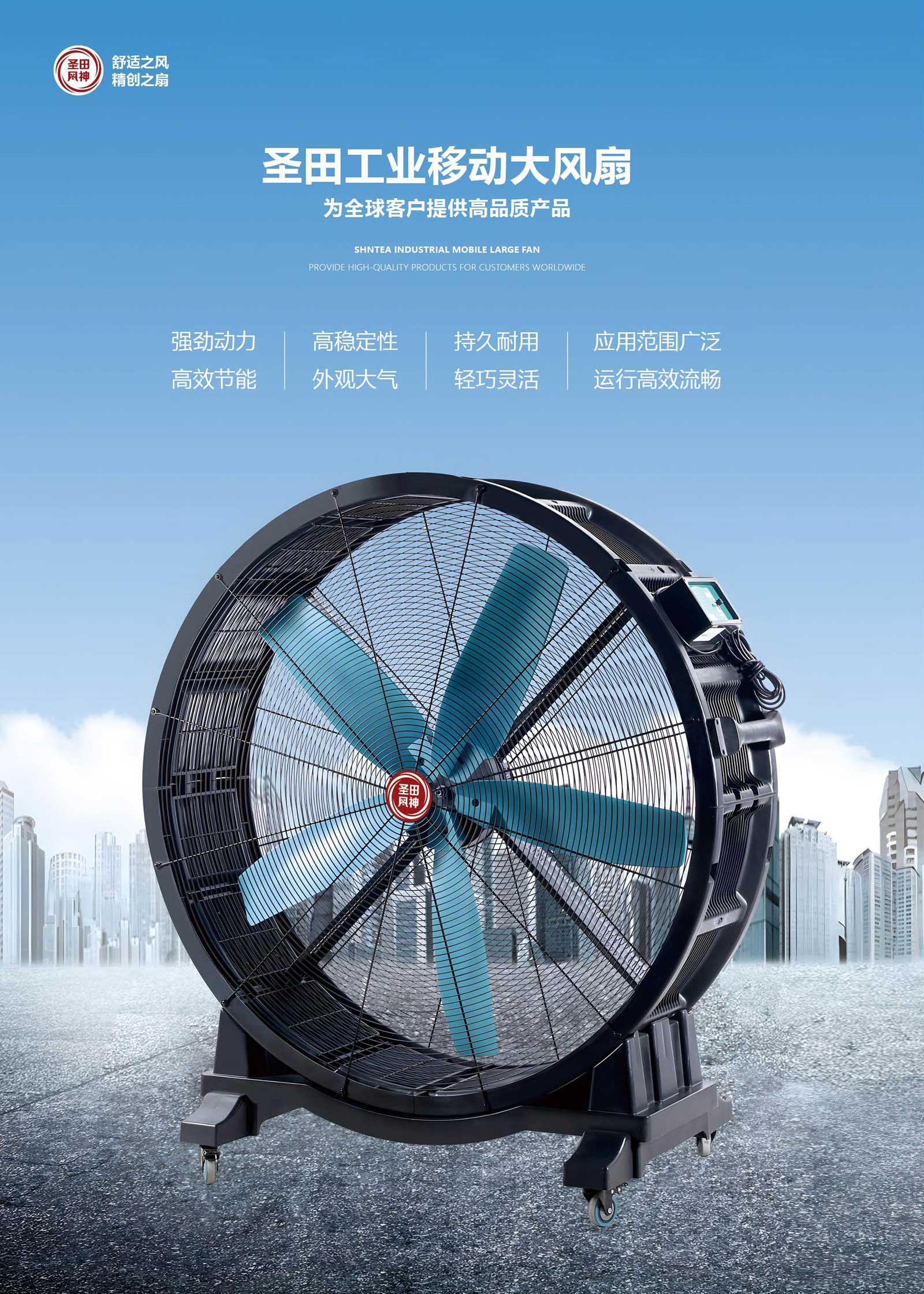 *強(qiáng)大的動(dòng)力提供強(qiáng)勁的出風(fēng)面積,使空氣流動(dòng)更高效節(jié)能,移動(dòng)風(fēng)扇最大直徑可達(dá)2米;